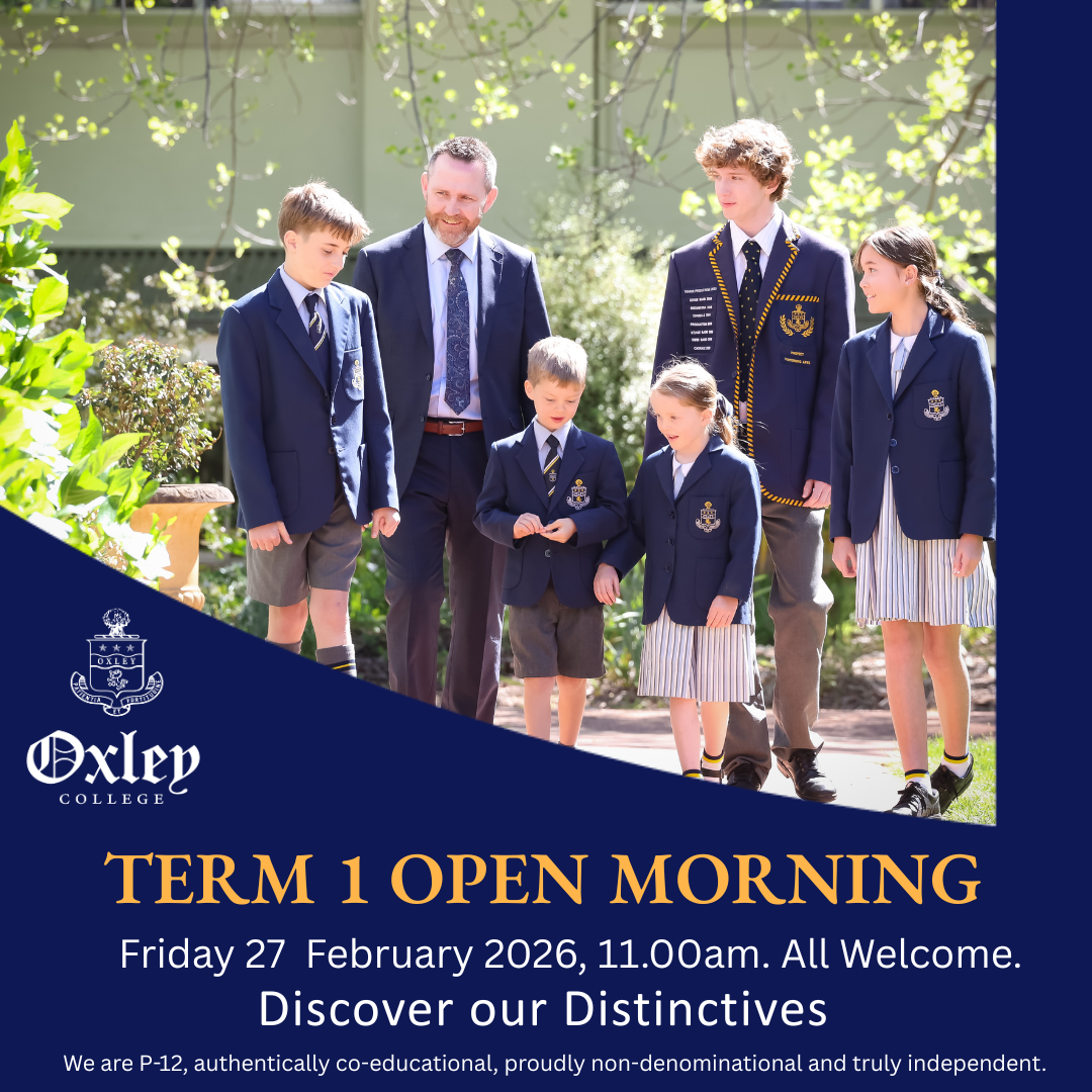 This is a wonderful opportunity to explore our vibrant learning spaces, gain insight into the depth of our subject offerings and see how we nurture both academic rigour and character development. At Oxley, we believe education extends beyond the classroom, fostering integrity, resilience, and a love of learning in every student.